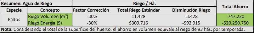 La optimización del riego mediante el sistema de triangulación tuvo un impacto directo y cuantificable en el uso de recursos. El tiempo promedio por evento de riego se redujo de 10 a 7 horas, lo que representa un ahorro del 30%.