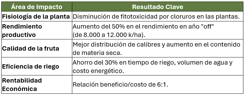 Las estrategias de nutrición, riego y poda no solo incrementaron el rendimiento y la rentabilidad, sino que también fortalecieron la resiliencia del huerto frente a estreses abióticos clave como la salinidad y las heladas.