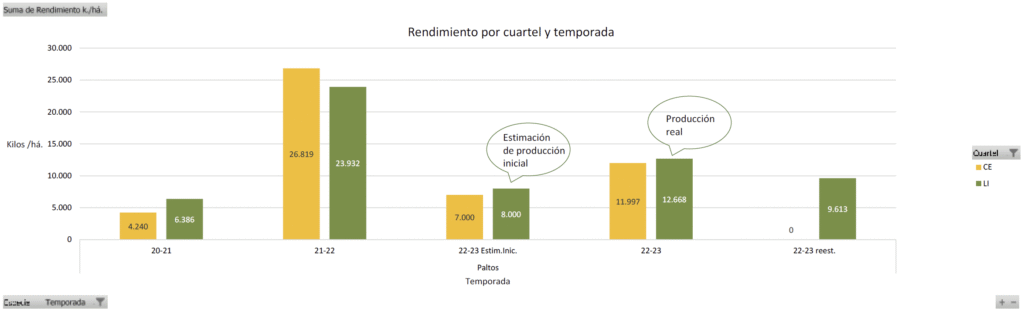 - Aumento de rendimiento: En una temporada considerada “off” (de baja producción por añerismo), se logró un aumento del 50% sobre la estimación inicial, pasando de 8.000 kg/ha a 12.000 kg/ha.